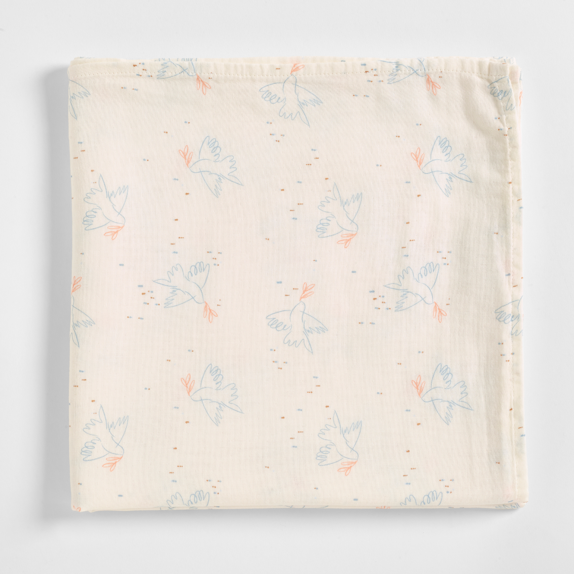 Our Dove muslin swaddle blanket is crafted from 100% certified organic cotton, gentle on delicate skin and free from harmful chemicals. Versatile everyday essential - Perfect not just for swaddling, but as a pram cover, nursing cover or comfort blanket.